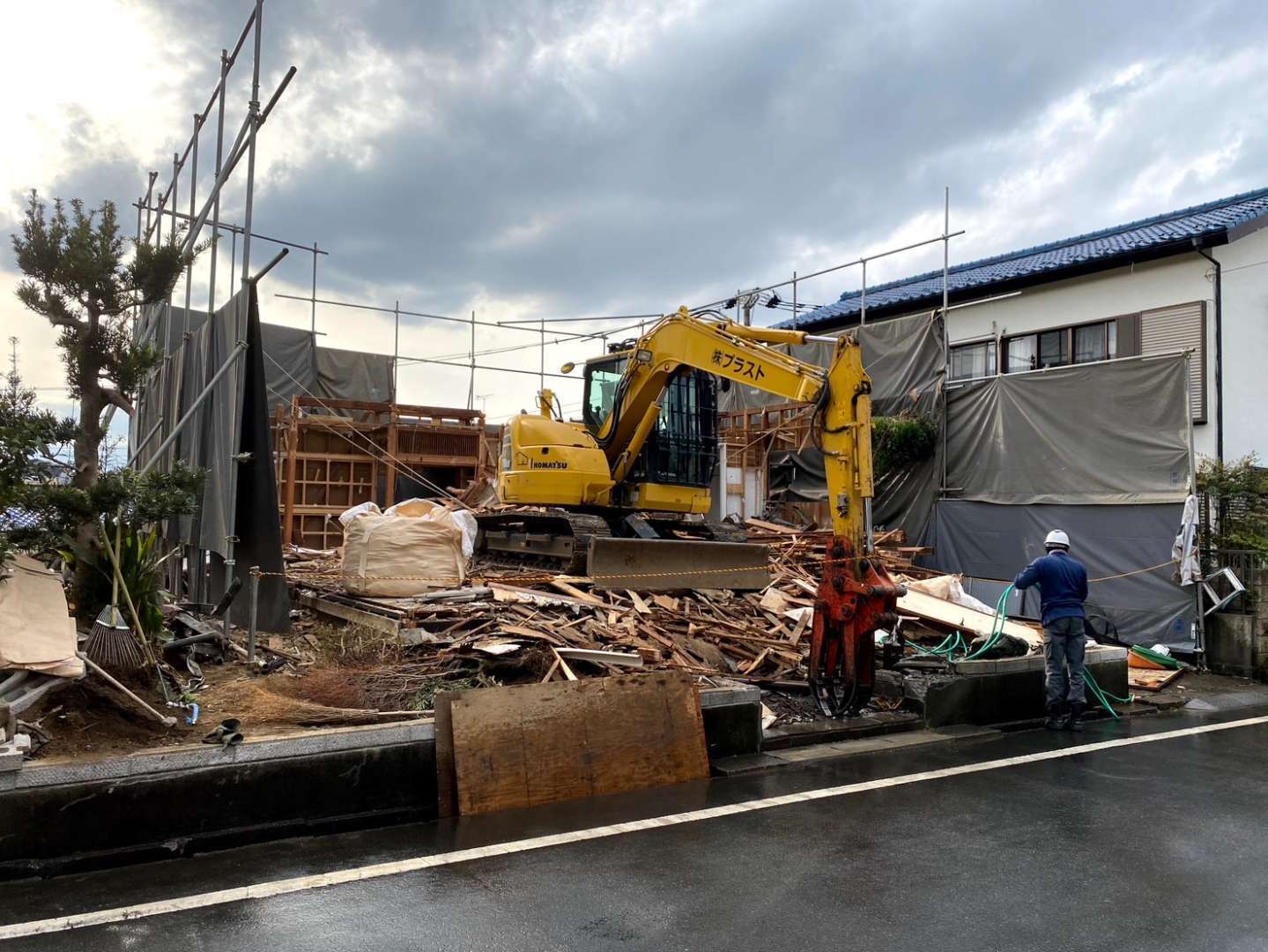 戸建て 建物解体工事 大和市・木造二階建解体工事 1.足場養生設置2.内装解体3.屋根材下ろし4.建物解体5.基礎解体6.整地・完了 1 / 1 前の施工事例 その他建築 町田市・コンクリートブロック(CB)の基礎 次の施工事例 戸建て 相模原市・木造二階建解体工事